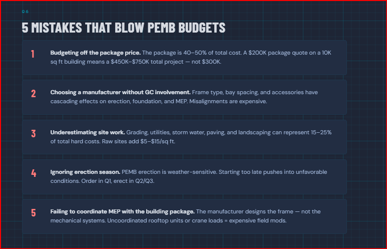 After building pre-engineered metal building projects across the country, these are the five most consistent planning mistakes we see derail PEMB budgets and timelines.
